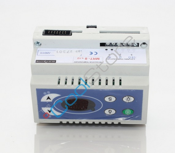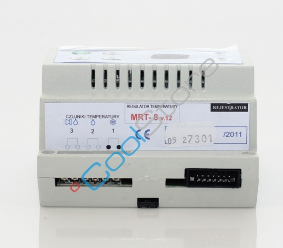 Temperature controller used mostly in refrigeration equipment of the conventional or forced circulation heat transfer and the conventional defrost, hot vapors, or heaters. One of the device's outputs enable control of a seperate heating systems independent of the cooling system. Controller allowes to control work of generator, lighting, evaporator fan, condenser fan, solenoid valve or heaters and three other outputs. Instrument is designed for rail mounting, and thanks to that can be mounted in various types of switchgear enclosure unassisted or in combination with other electrical devices