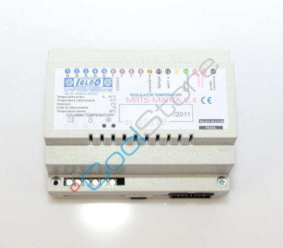 Electronic, programmable temperature controller used in refrigeration units equiped with humidification system. Device is mostly applicabe in refrigeration units in confectionery. Termoregulator consist of two enclosures: