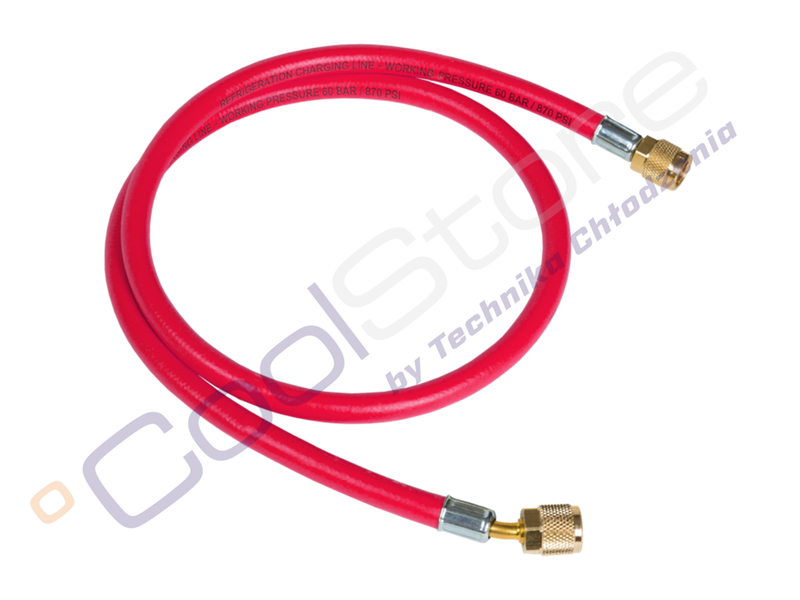 High quality charging hose for all common refrigerants with 1/4" SAE fittings. The special rubber compound is extremely durable due to its high pressure resistance and low embrittlement. All hoses are equipped with turned PTFE seals, which are anchored in the union nut by a special snap system and thus secured against blowing out.