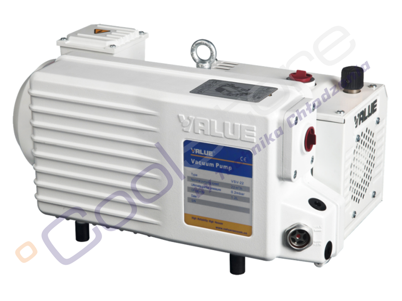 The single-stage Value vacuum pump is designed for generating vacuum in closed systems. The VSV series pumps use a small amount of fresh air (so-called gas ballast) at the end of the vacuuming cycle, which pushes out the impurities drawn during the vacuum generation, thus preventing the risk of oil contamination. Pump inlet is equipped with a non-return valve that prevents air from entering the system after the power is switched off as well as unwanted oil suction. In addition, the pumps are equipped with an oil mist filter, thanks to which pollutants escaping during pump operation are reduced to a minimum. The devices have been designed so that the lubrication system is in the closed mode and the deposited oil in the oil mist filter flows to the device by gravity.