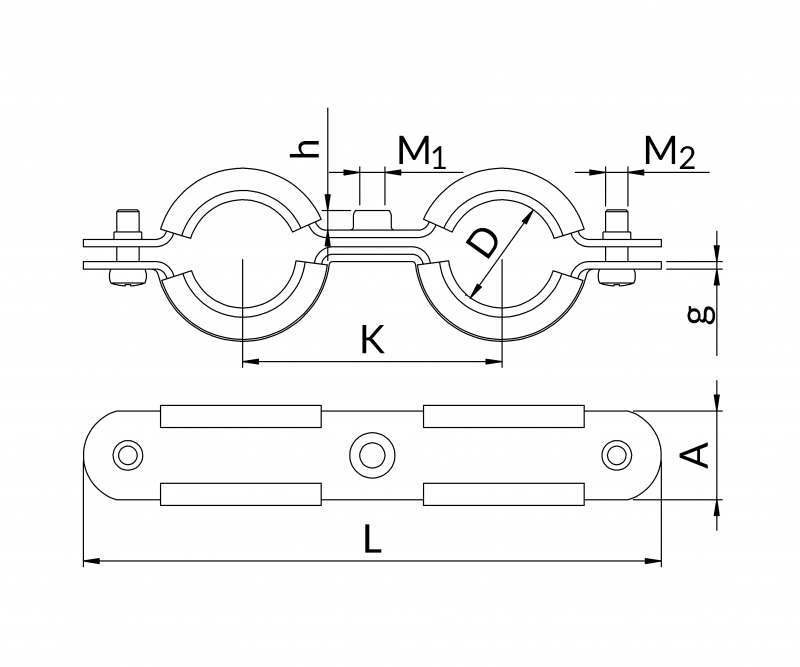 NICZUK DOUBLE PIPE CLAMP UDG 3/4 (26 - 29 MM)