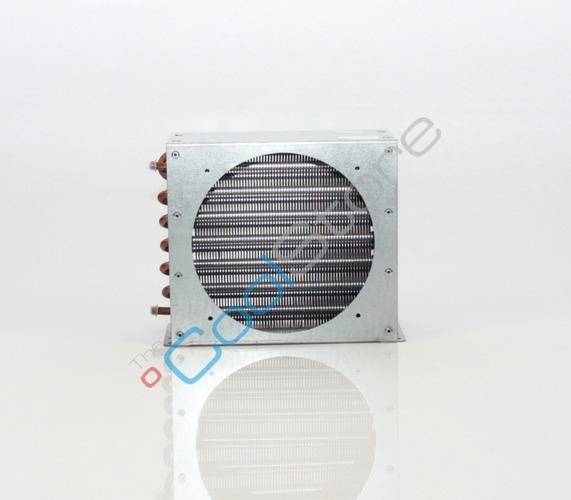 Skraplacz nieuzbrojony 0,57 kW stosowany jest w małych układach chłodniczych (lady chłodnicze, regały chłodnicze, witryny cukiernicze, zamrażarki sklepowe itp). Służy jako urządzenie do skraplania gorących par czynnika chłodniczego. Gorące pary czynnika chłodniczego powstają podczas sprężu (pracy sprężarki), oraz w trakcie odbierania ciepłego powietrza z parownika – chłodnicy. Jest jednym z czterech niezbędnych (podstawowych) elementów układu chłodniczego (sprężarka, skraplacz, parownik-chłodnica, element dławiący – kapilara, zawór termostatyczny). Wykonany jest z miedzianej wężownicy i aluminiowych lameli, oraz obudowy która została pokryta ocynkiem. Wydajność skraplacza nieuzbrojonego wynosi 570 W. Posiada wejście na jeden wentylator o średnicy 172 mm, a jego wymiary to 243x112x205 mm.
