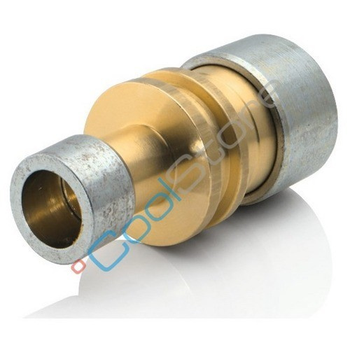 Mosiężna, redukcyjna złączka Lokring 12/10 NR Ms 50, do łączenia rurek o fi 12 mm i fi 10 mm. Do połączeń różnych średnic zewnętrznych rur miedzianych i/lub stalowych.