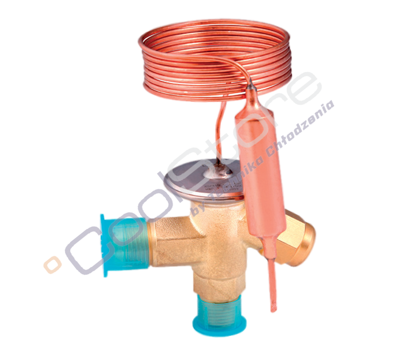 Termostatyczny zawór rozprężny SANHUA RFKA03 E-3.4-15 z zewnętrznym wyrównaniem ciśnienia służy do regulacji przepływu czynnika chłodniczego przez parownik. Regulacja przepływu uzależniona jest od temperatury przegrzania mierzonej na wylocie z chłodnicy. Do połączenia zewnętrznego wyrównania czynnika służy króciec 1/4" SAE. Wlot zaworu termostatycznego RFKA03 E-3.4-15 to 3/8" SAE natomiast wylot 1/2" SAE. Wszystkie połączenia w omawianym zaworze są skręcane. Prezentowany produkt jest przeznaczony do czynników R404a i R507, dlatego też typowe aplikację to chłodnictwo.