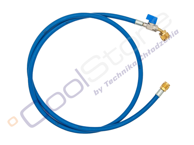 Wysokiej jakości wąż serwisowy z zaworem kulowym do stosowania z wszystkimi popularnymi czynnikami chłodniczymi.
