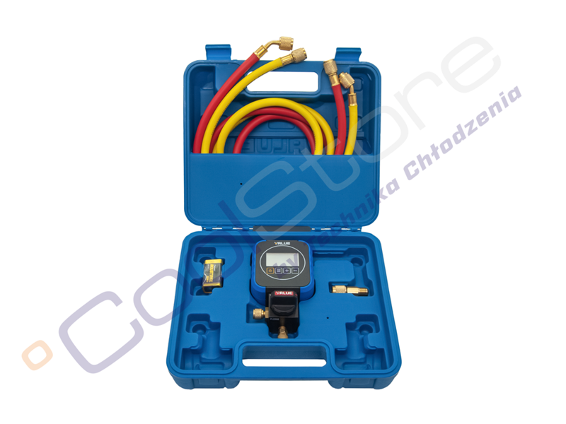 Pojedynczy manometr cyfrowy przeznaczony do układów chłodniczych i klimatyzacyjnych.